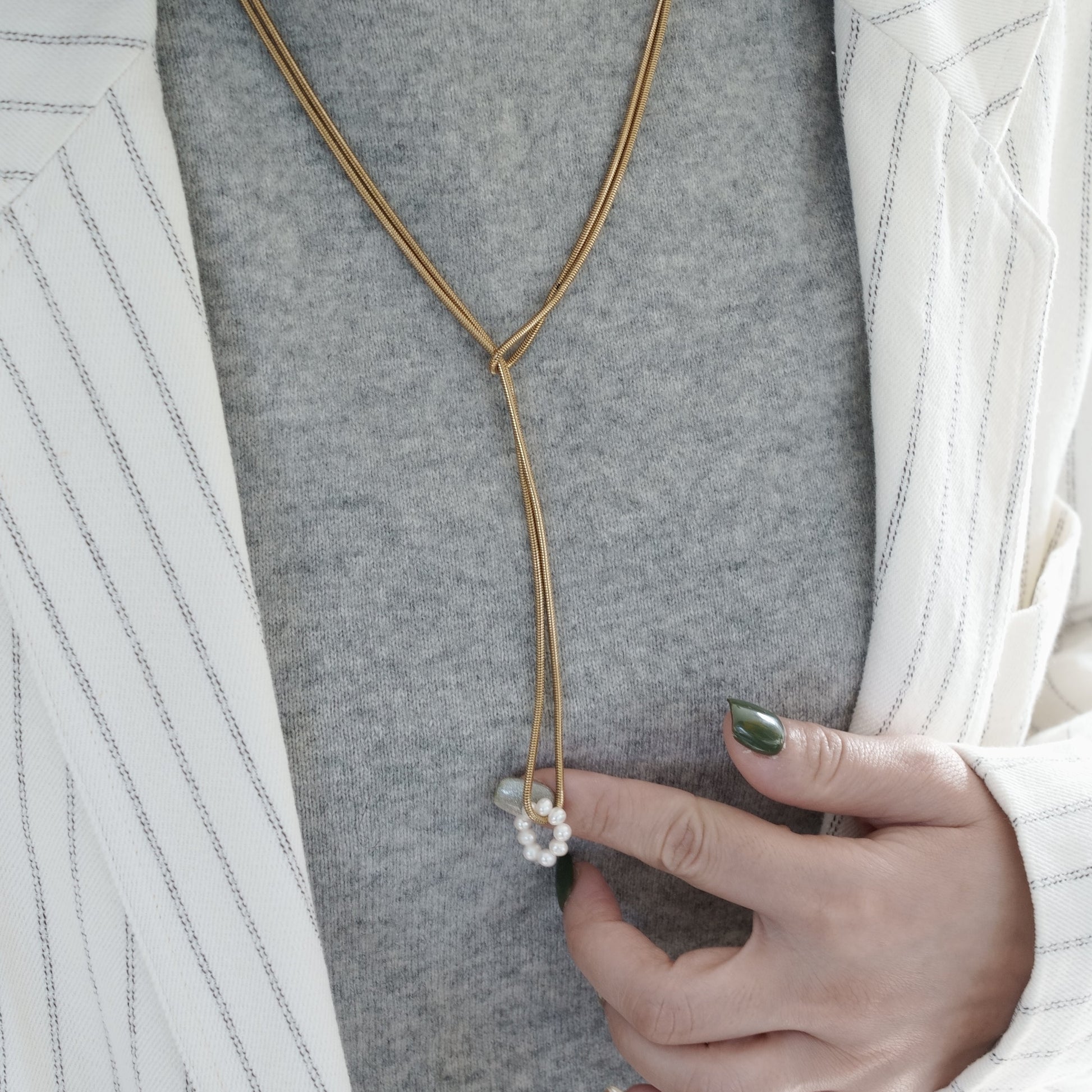 Ce collier pour pull est orné de perles d'eau douce. Hypoallergique. Parfait pour les accessoires de mode élégants.
